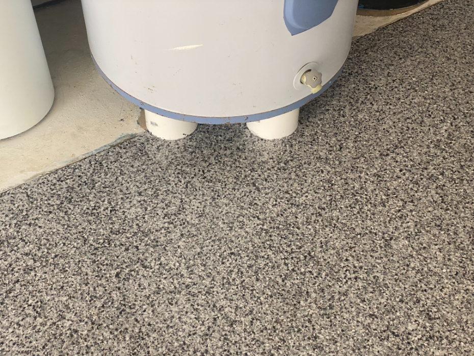Client wanted all control joints filled, fixed pitted & spaulding on concrete slab, diamond grind to remove existing coating 1st, then coated step to match new floor, driveway lip & around water heater, furnace, ect. Used the WAUGH 7 step process 100% satisfied customer. We also applied base color on driveway approach apron, to give client a complete finished look when garage door is closed on inside of garage. Complete with 15 Year Manufacture Warranty.