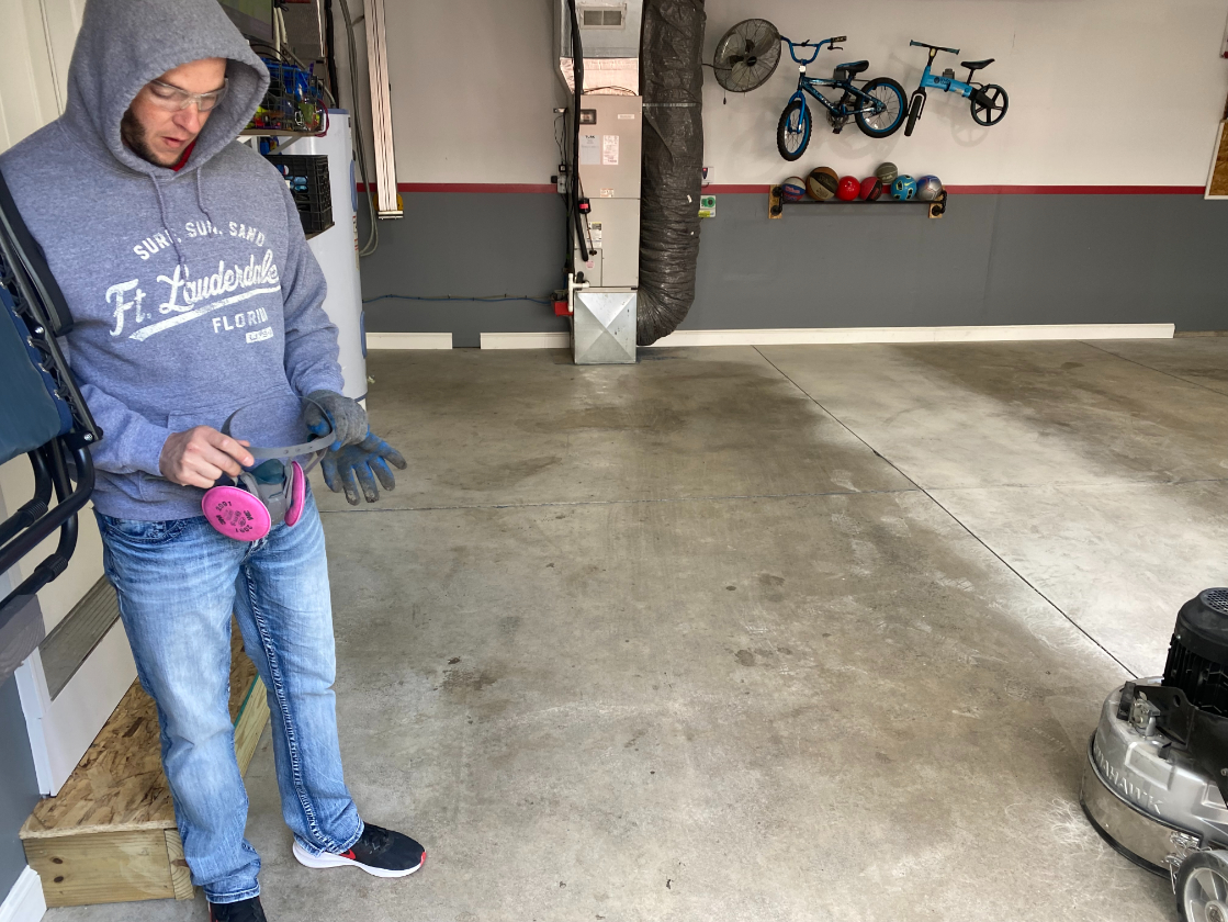 - Remove old ugly failing epoxy floor coating.